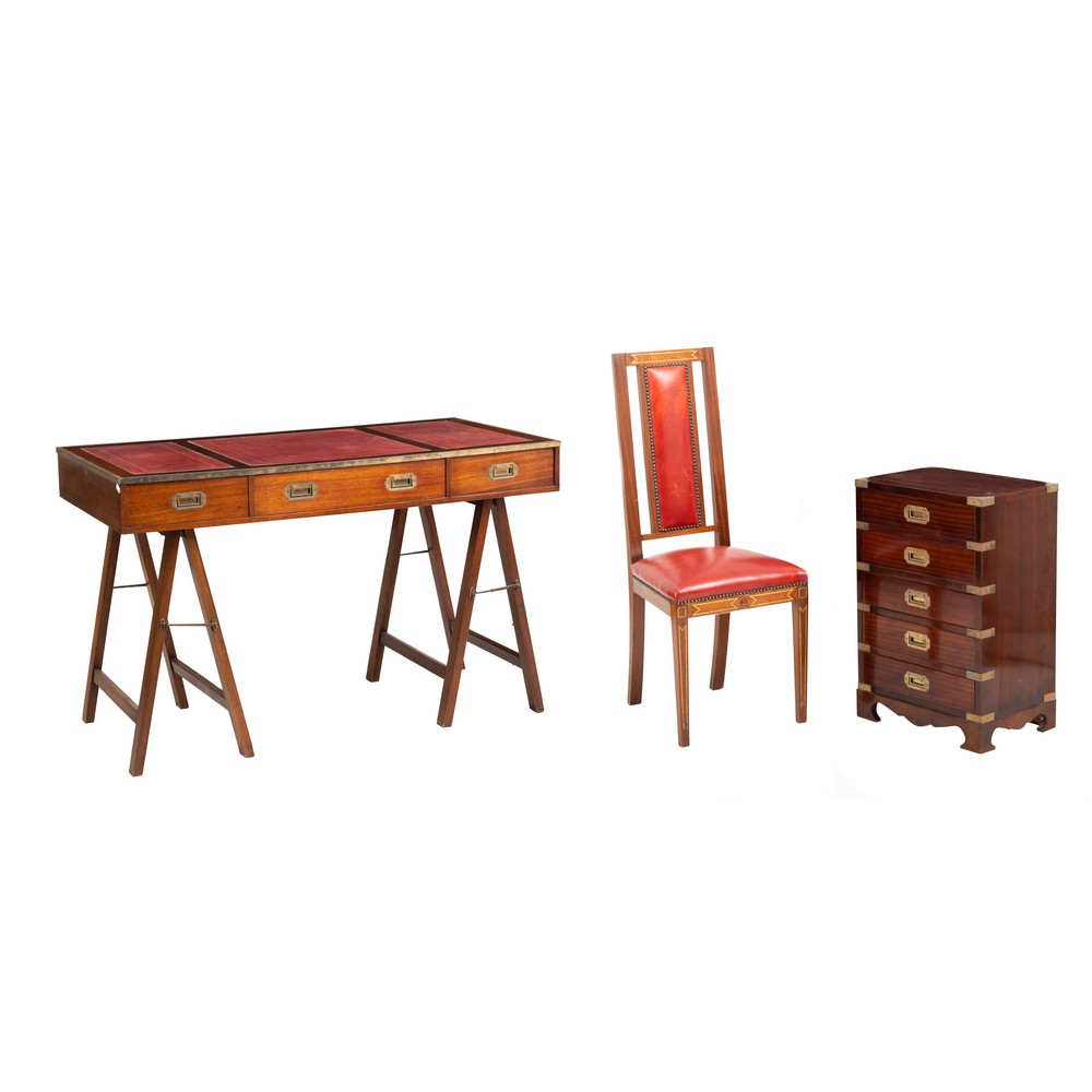 Scrittoio con sedia e comodino in legno di mogano stile vecchia marina.