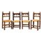 Quattro sedie in legno di castagno con sedute realizzate in corda.