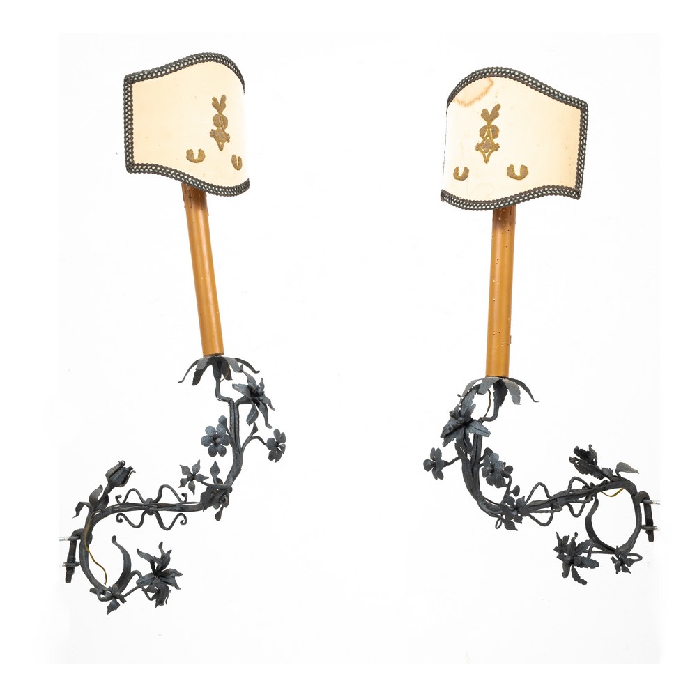 Coppia di applique in ferro battuto con ventole (elettrificati).