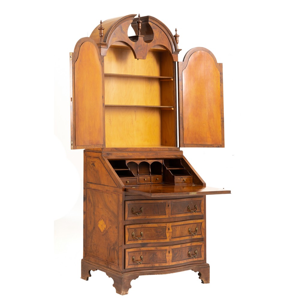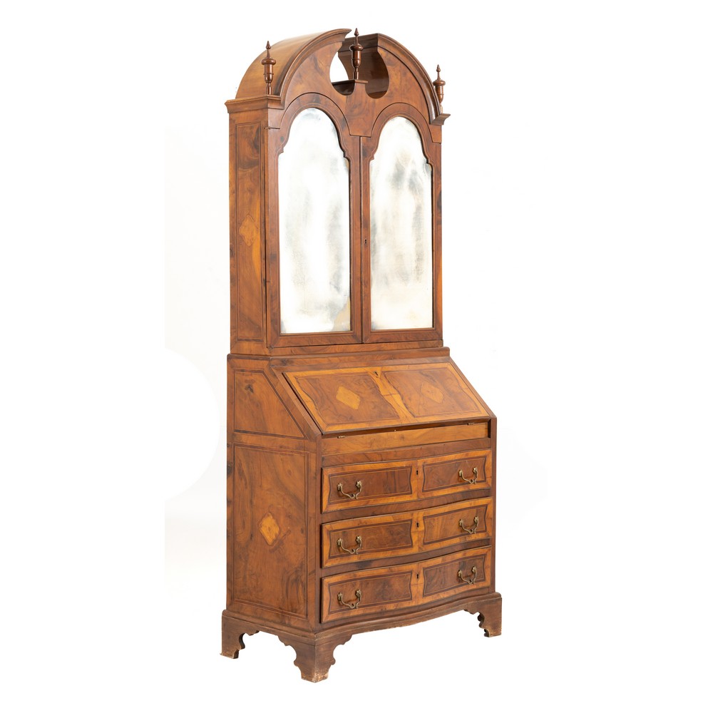 TRUMEAU di gusto settecentesco in legno di noce, piuma di mogano con riquadrature in radica di ulivo e perfili in bosso.