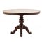 Tavolo di forma circolare in legno di mogano con fusto a colonna e piedi a sciabola (influenza inglese).