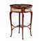 Tavolino/bacheca di forma sagomata in legno di mogano.