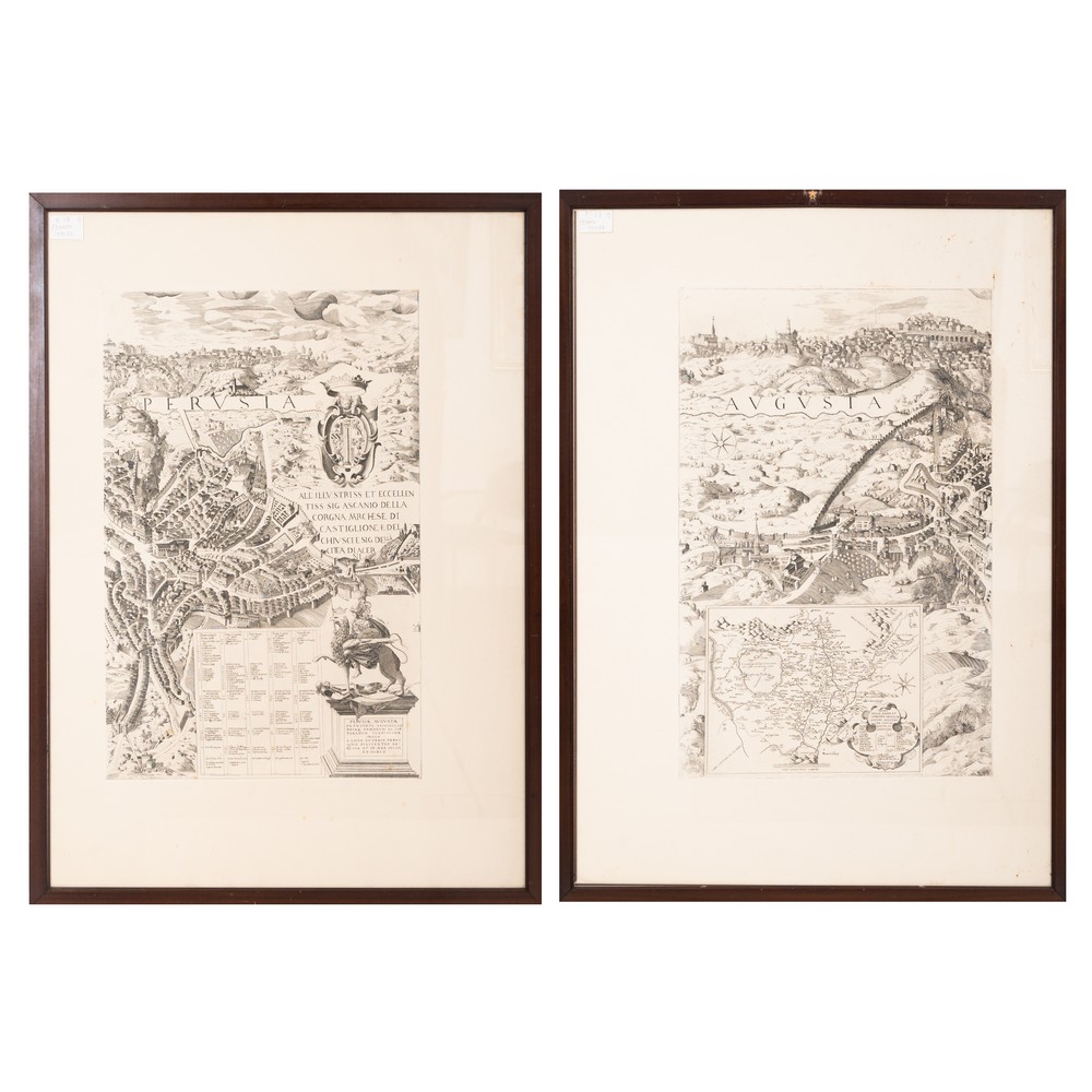 DUE INCISIONI entro cornice lignea dal titolo AUGUSTA PERUSIA