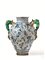 Il vaso presenta corpo ovoidale su base stretta con piede distinto, piano e appena estroflesso; l’imboccatura è larga ed estroflessa; dai fianchi si dipartono due anse plastiche a forma di “drago”, dipinte in verde ramina e poggianti su due mascheroni a volto di satiro foggiati a rilievo e colorati di giallo. L’oggetto è privo di beccuccio per la fuoriuscita dei liquidi.