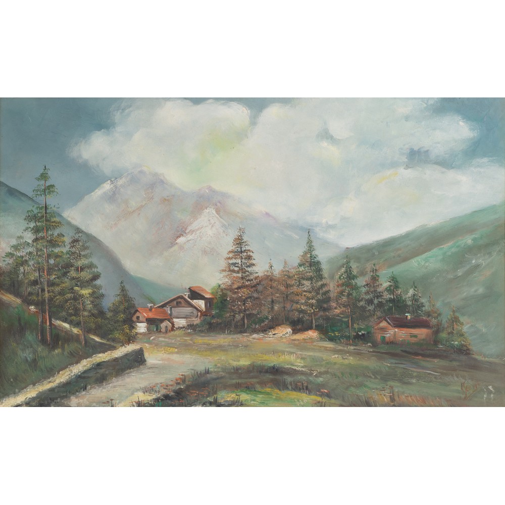 ANONIMO DEL XX SECOLO, Paesaggio boschivo, Olio su masonite