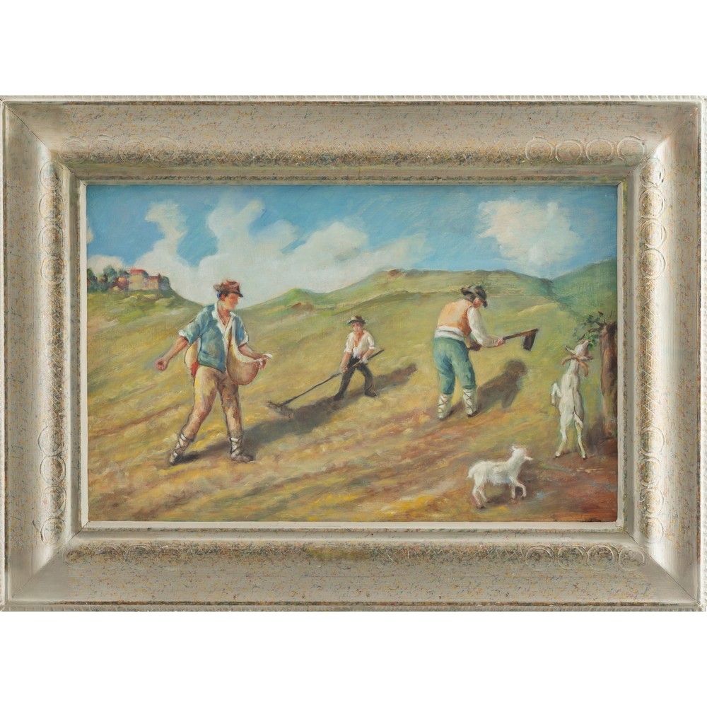 ANONIMO DEL XX SECOLO, Contadini, Olio su tela