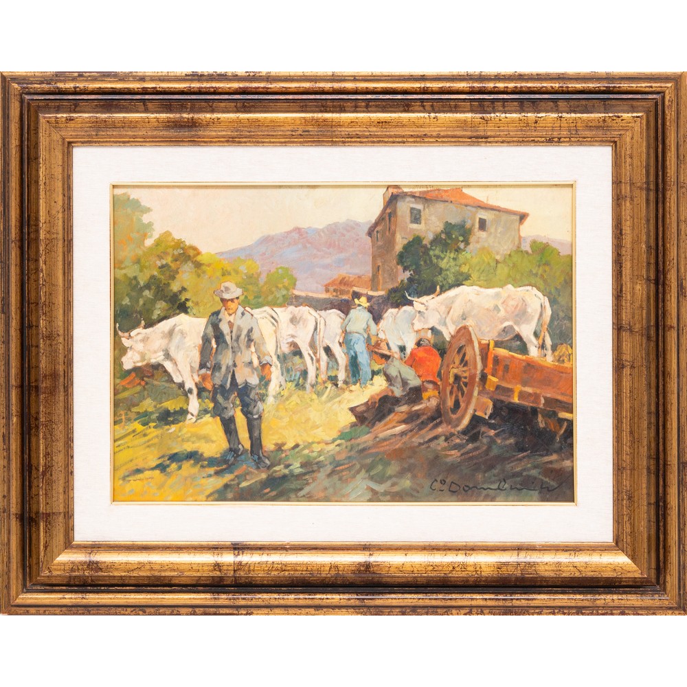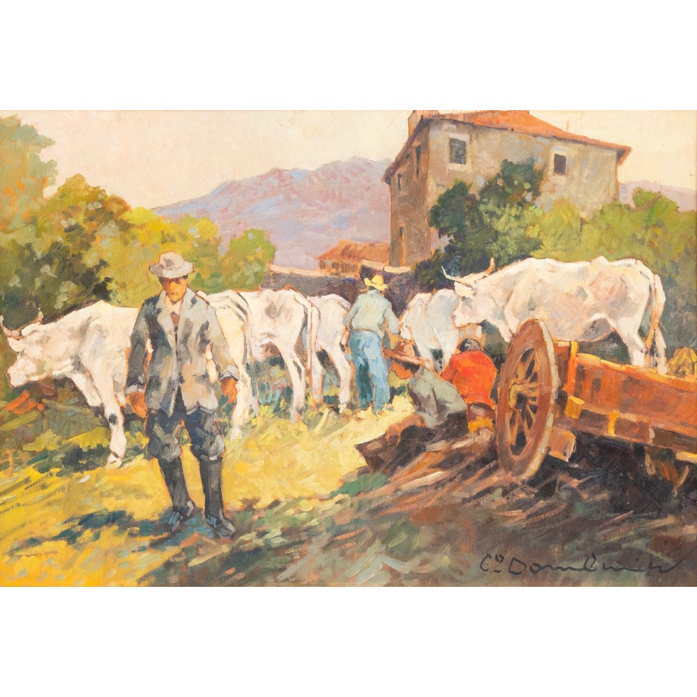 Lot 673 | CARLO DOMENICI, Buoi al pascolo, Olio su tavoletta