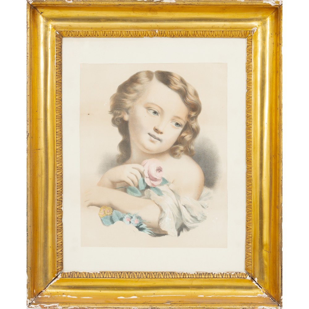 Cornice in legno dorato ad oro zecchino con all'interno stampa raffigurante "Bambina".