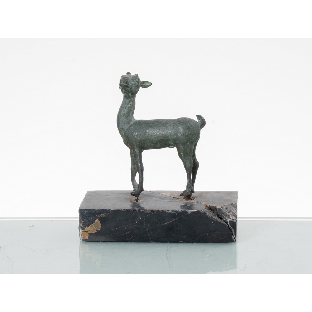 Scultura in bronzo raffigurante "Cerbiatto", fusione a cera persa, base in marmo nero portoro.