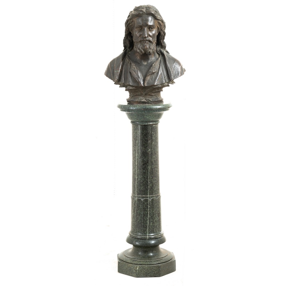 Scultura in bronzo, fusione a cera persa con colonna in marmo verde delle Alpi raffigurante "Cristo", firma nel retro Filippo Galli (XIX secolo).