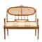 Salotto composto da divano, due poltrone ed un tavolino in legno di rovere, sedute e spalliere in paglia di Vienna.