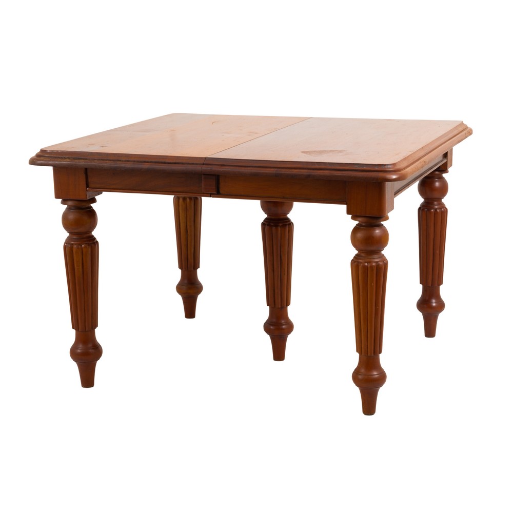TAVOLO allungabile con manovella in legno di mogano (quattro allunghi).