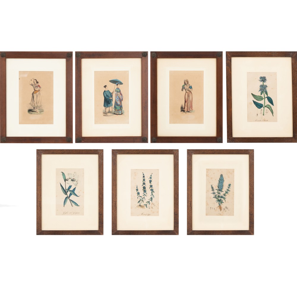 SETTE INCISIONI a colori di cui quattro raffiguranti "Botanica" e tre raffiguranti "Figure orientali".