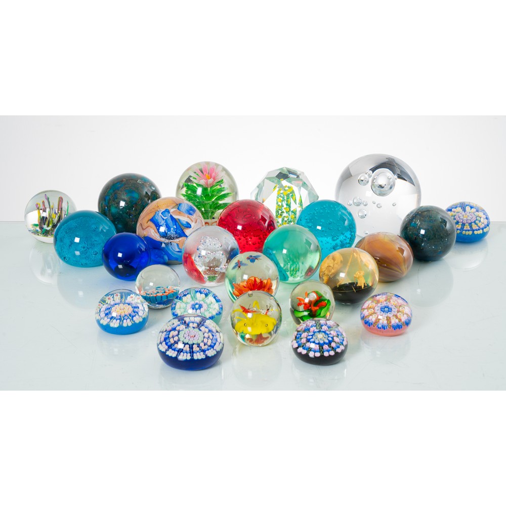 VENTICINQUE FERMACARTE in vetro di Murano lavorato e colorato.