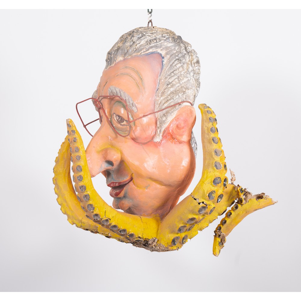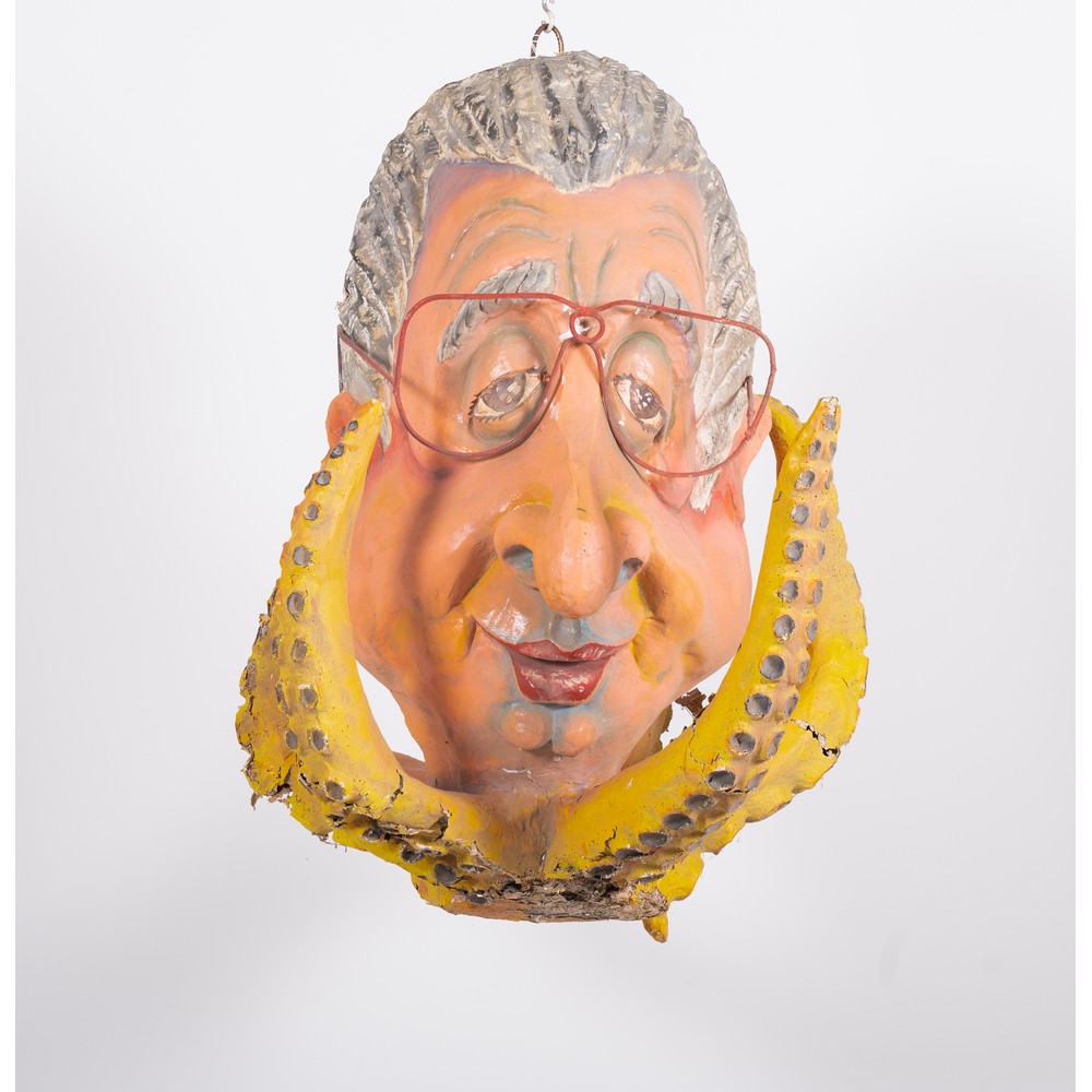 Scultura/maschera per carro di Carnevale in cartapesta dipinta (usure e difetti).