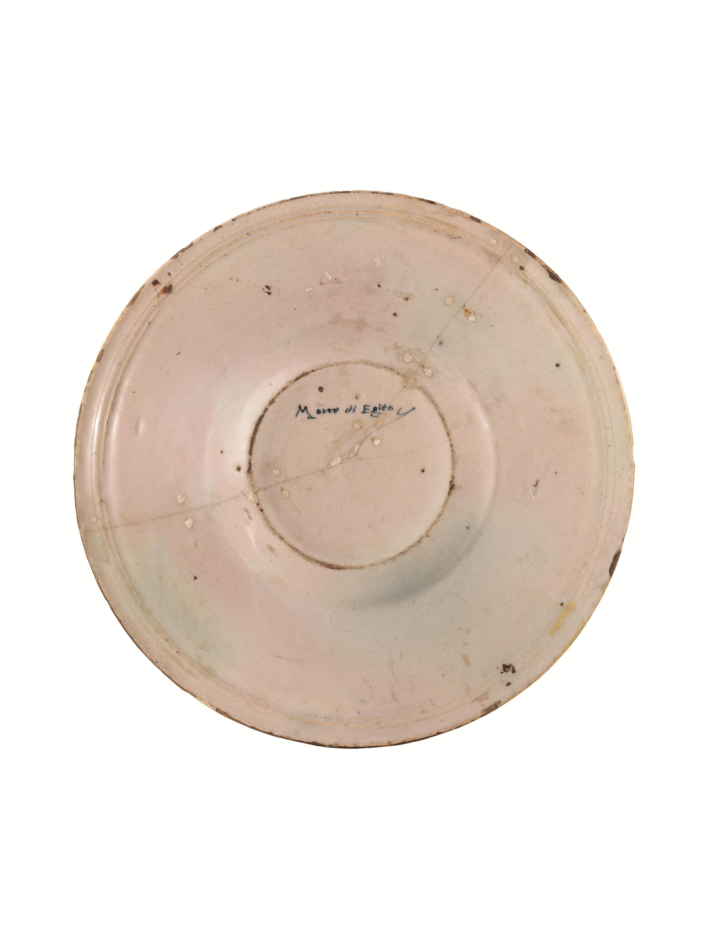On the back, beneath the base, inscription in blue ‘morte di Egieo Y’