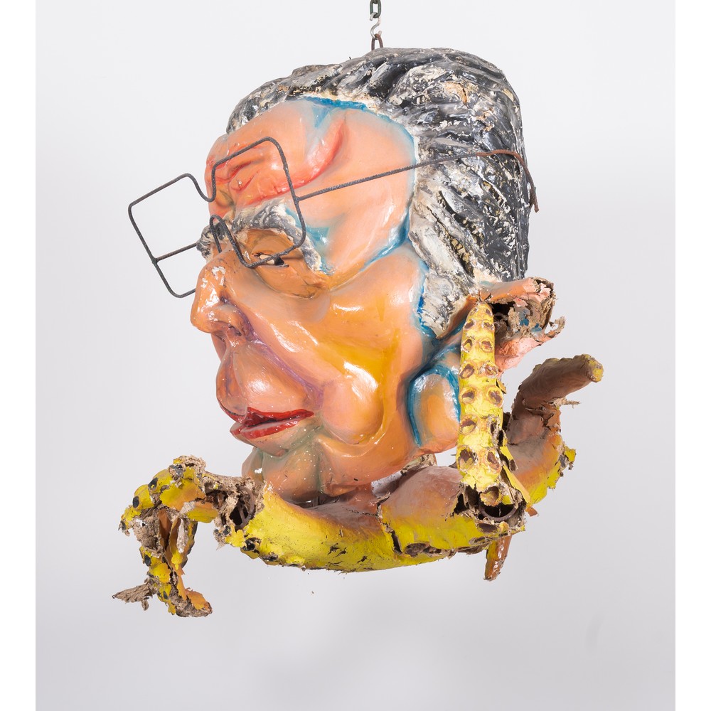 Scultura/maschera per carro di Carnevale in cartapesta dipinta (usure e difetti).