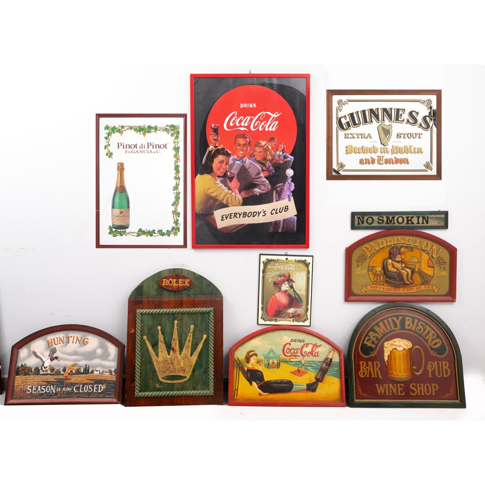 Venti oggetti da birreria composti da quadri, pannelli ed elementi.