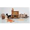Quindici giocattoli composti da: dieci piccoli mobili, bambolina in cartapesta, cavallino a dondolo in miniatura, cagnolino automa, piccola scatola gioco Mikado e clown in legno a molla (usure e difetti).