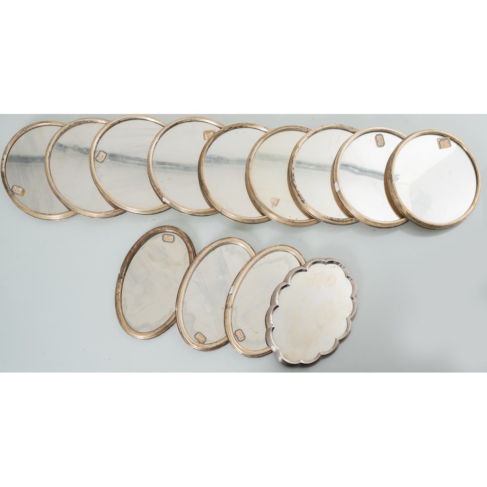 TREDICI VASSOI in metallo argentato con piani a specchio.