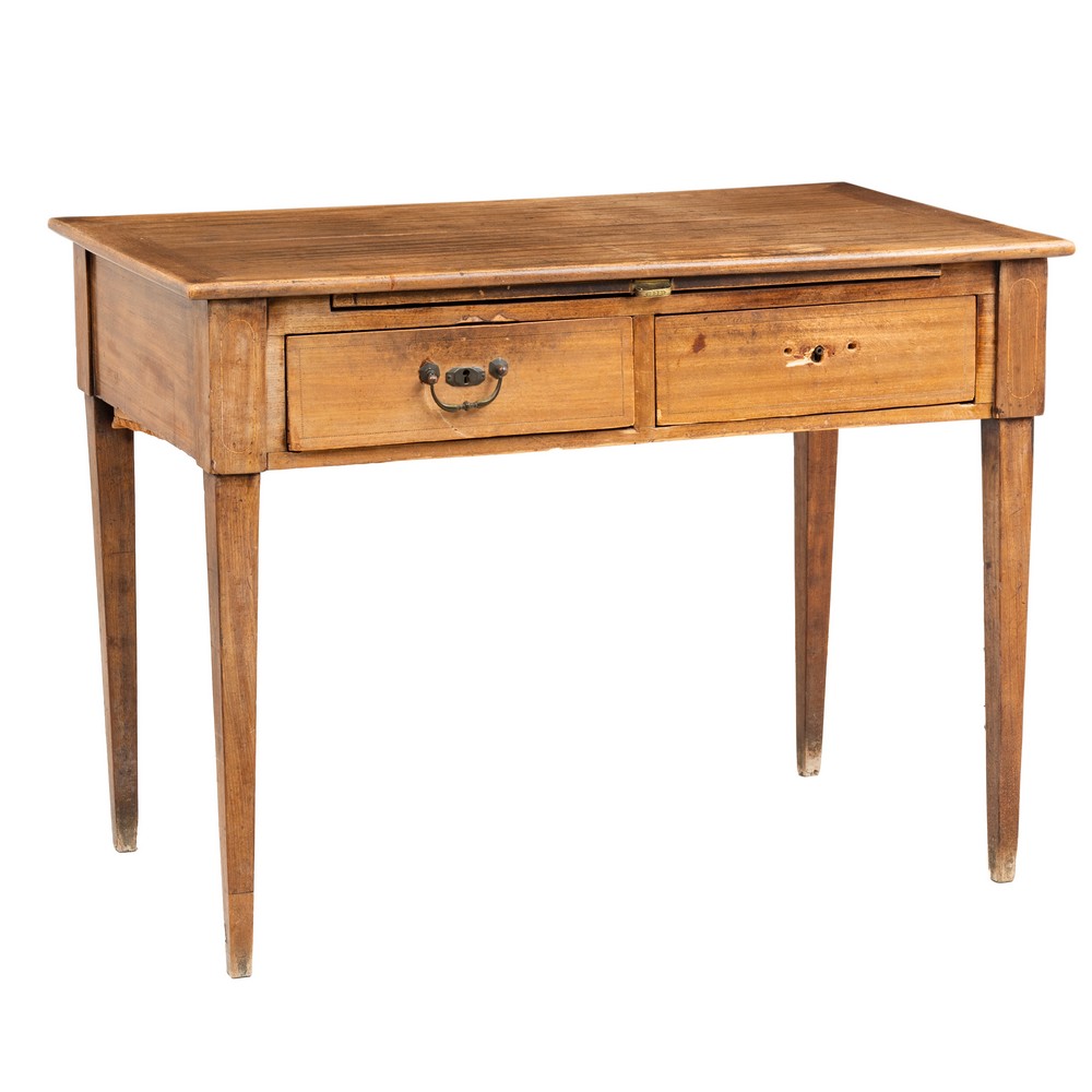 Piccolo scrittoio Luigi XVI in legno di noce con due cassetti.