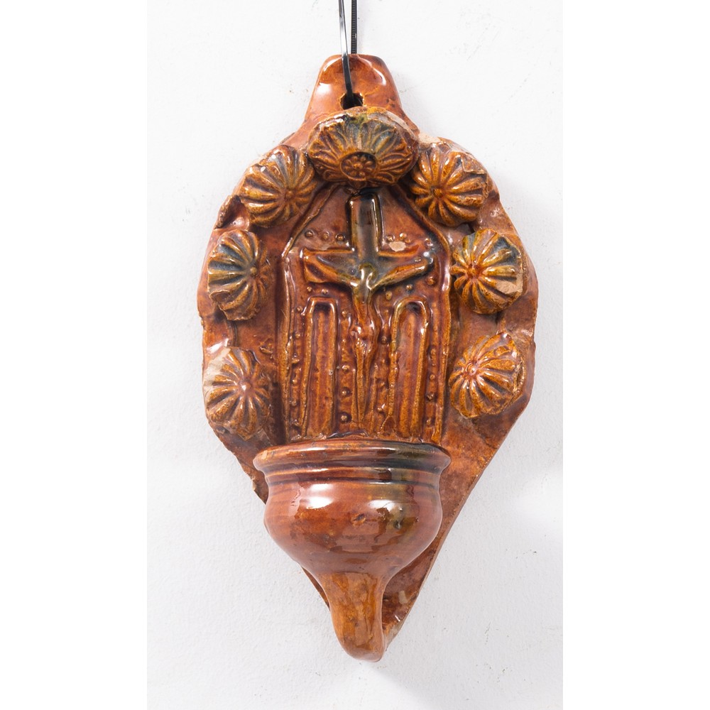 Acquasantiera in ceramica smaltata e decorata (usure).