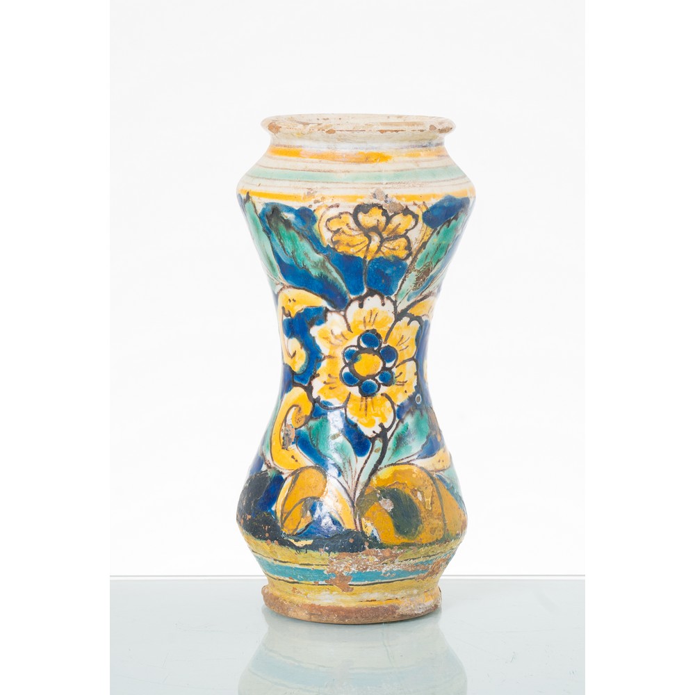 Albarello in ceramica smaltata e decorata (mancanze e restauri).
