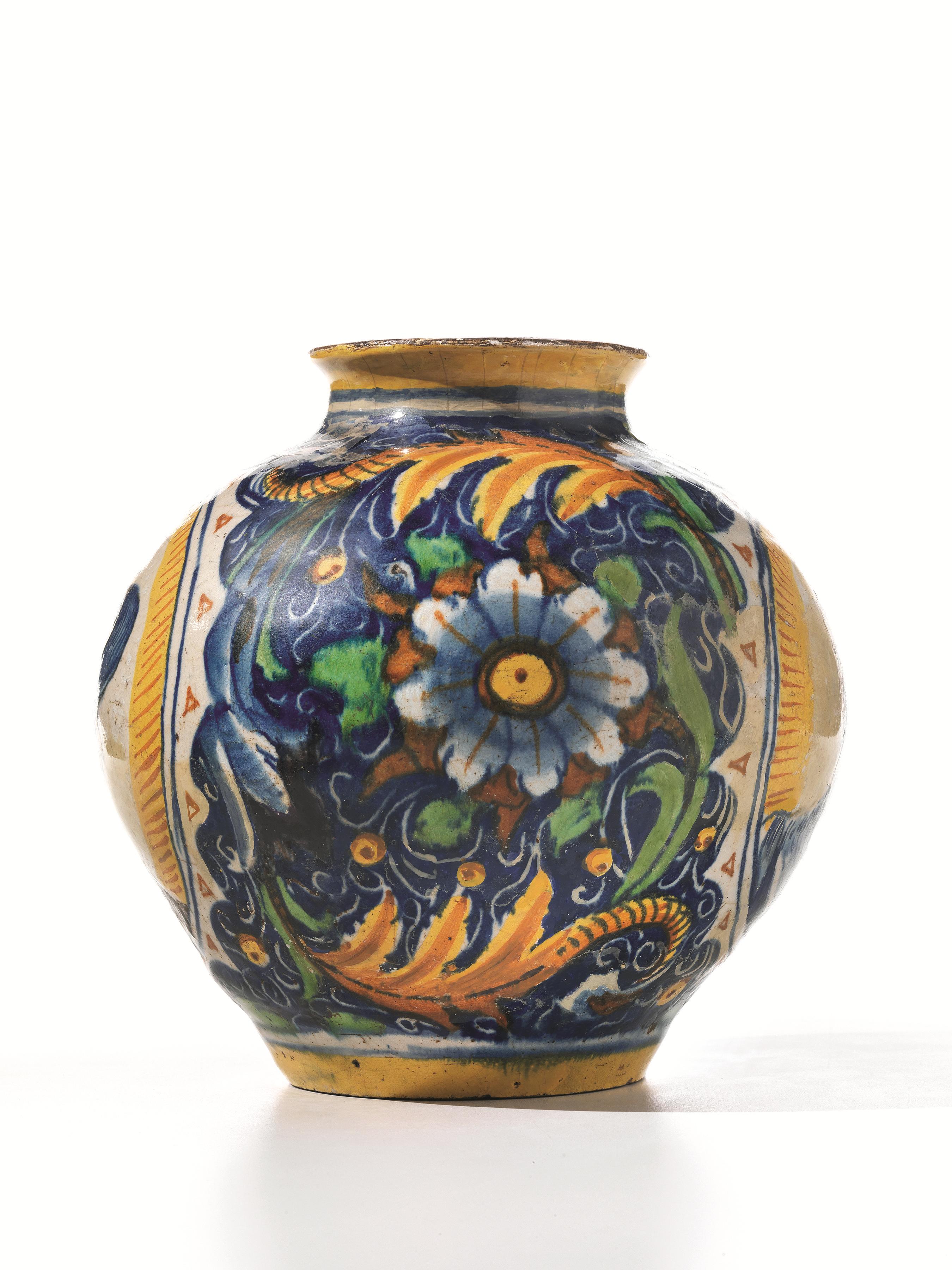 VASO A BOCCIAVenezia, circa 1575 Maiolica decorata in policromia con...