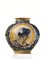 Il decoro mostra due ampi medaglioni opposti con orlo mistilineo, bordati da un doppio profilo blu; all’interno due ritratti (il maschile, collocato di profilo, ha un copricapo, quello femminile, di tre quarti, indossa una cuffia) spiccano sul fondo bianco a risparmio, lumeggiato da piccoli tocchi di bianco a creare un alone, delineato da una larga fascia gialla decorata con sottili trattini arancio a raggera. Il resto del vaso è decorato con fiori dalla larga corolla, foglie accartocciate, foglie lanceolate e piccoli fruttini, su un fondo riempito da uno spesso strato di blu cobalto, ingentilito e illuminato da lumeggiature sinuose realizzate con sottili linee incise a retro di pennello.