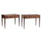 Coppia di consolle Luigi XVI con cassetto centrale in legno di mogano, piano in marmo grigio incassato.