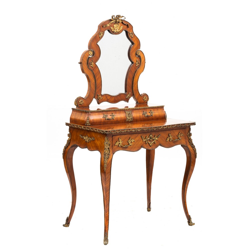Toletta in legno rosa riccamente guarnita da bronzi.