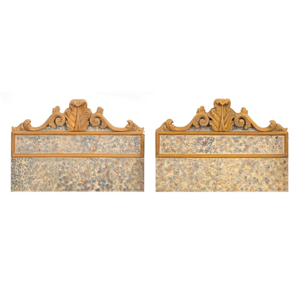 Coppia di fregi laccati trasformati a testate da letto.