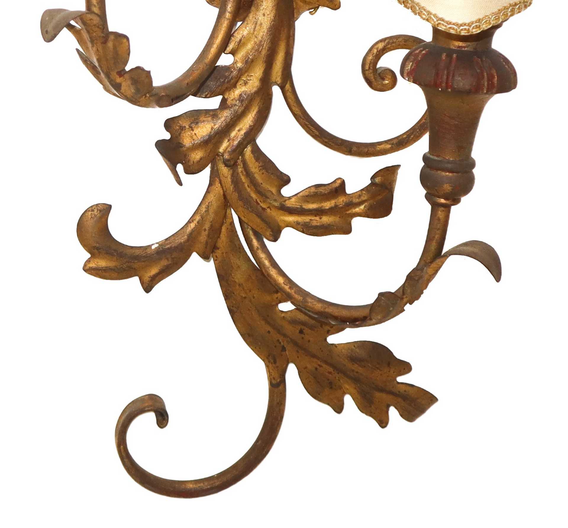 Applique a 2 luci, Primi 20° secolo h cm 47 x 24 Lavorato a mano a foglia e portacandele in legno.Lavorato a mano a foglia e portacandele in legno.