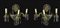 Coppia di appliques in ottone e carta di spagna leggera, con brindoli molati a mano. A tre luci, Fine 18° secolo