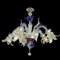 Lampadario a cinque luci in vetro di Murano trasparente dorato e blu