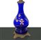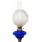 Lume a petrolio in vetro blu dipinto a fiori con diffusore in vetro a palla bulinato, Primi 20° secolo