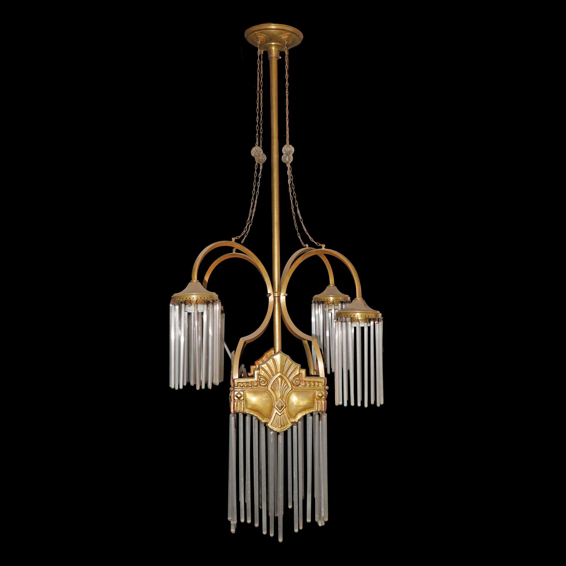 Lampadario 5 luci con canule in vetro, Liberty (Primi 20° secolo)