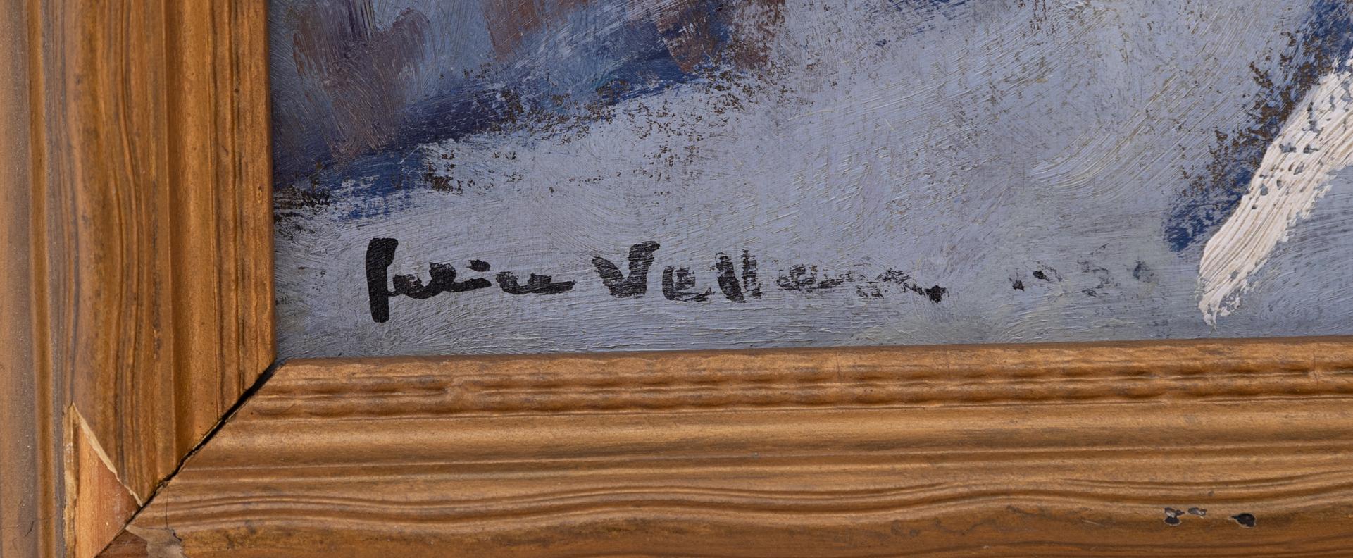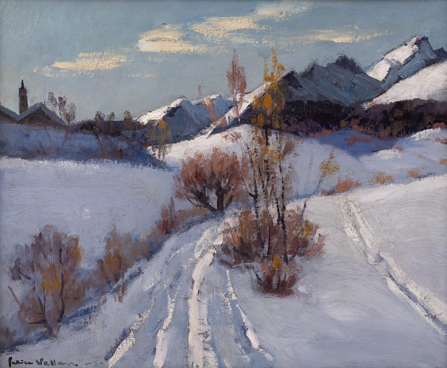 Felice Vellan - Nevicata a Chateaux Boulari 1950 - Torino 1889-1976 - Olio su tavola cm 49x59