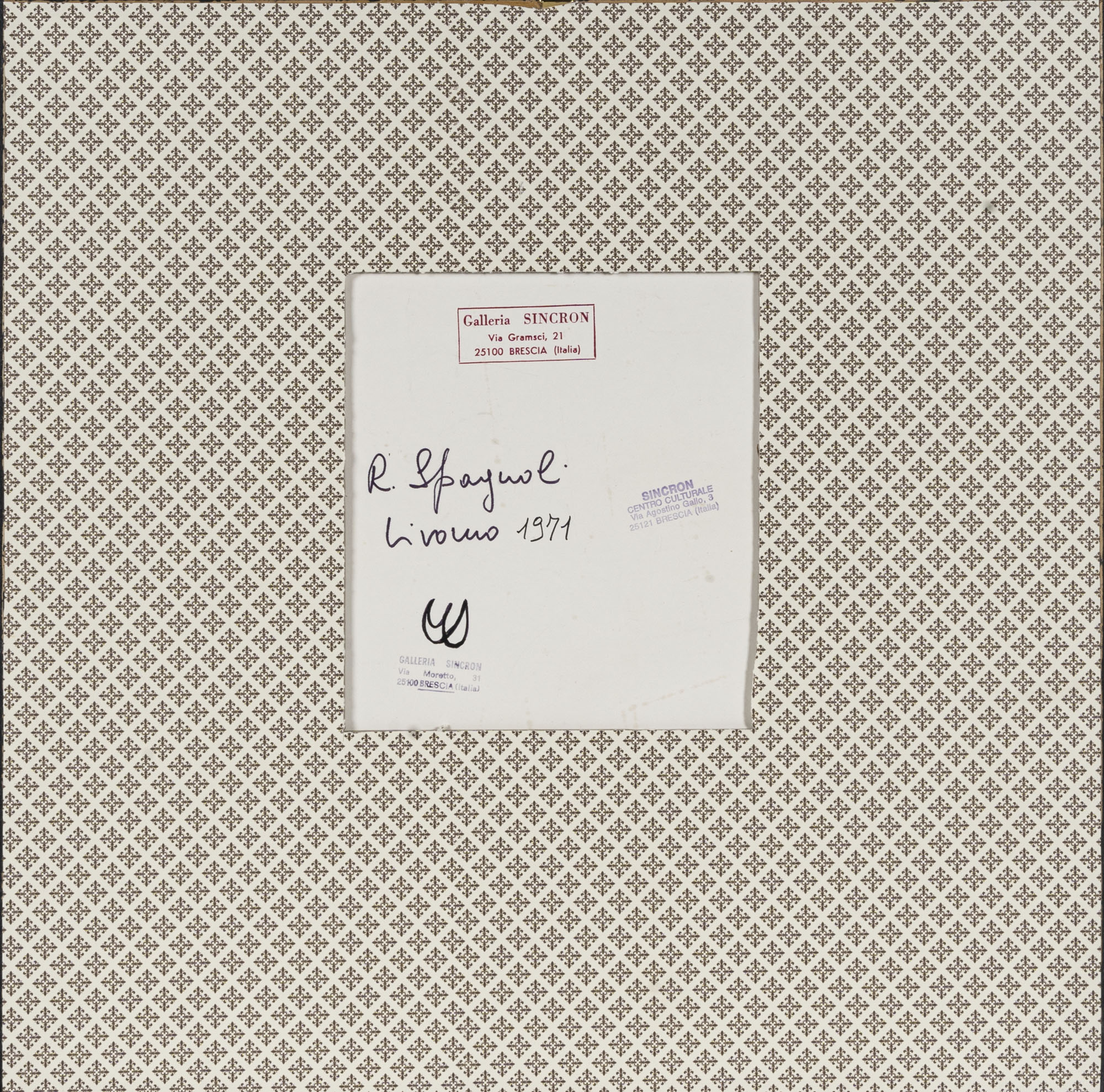 RENATO SPAGNOLI(1928 - 2019)Senza titolo1971Collage su carta29 x 29 cm circaFirma e data al retroPROVENIENZA:Centro Culturale Sincron, Brescia (timbro al retro)Galleria Sincron, Brescia (timbri al retro)Collezione privata, Milano