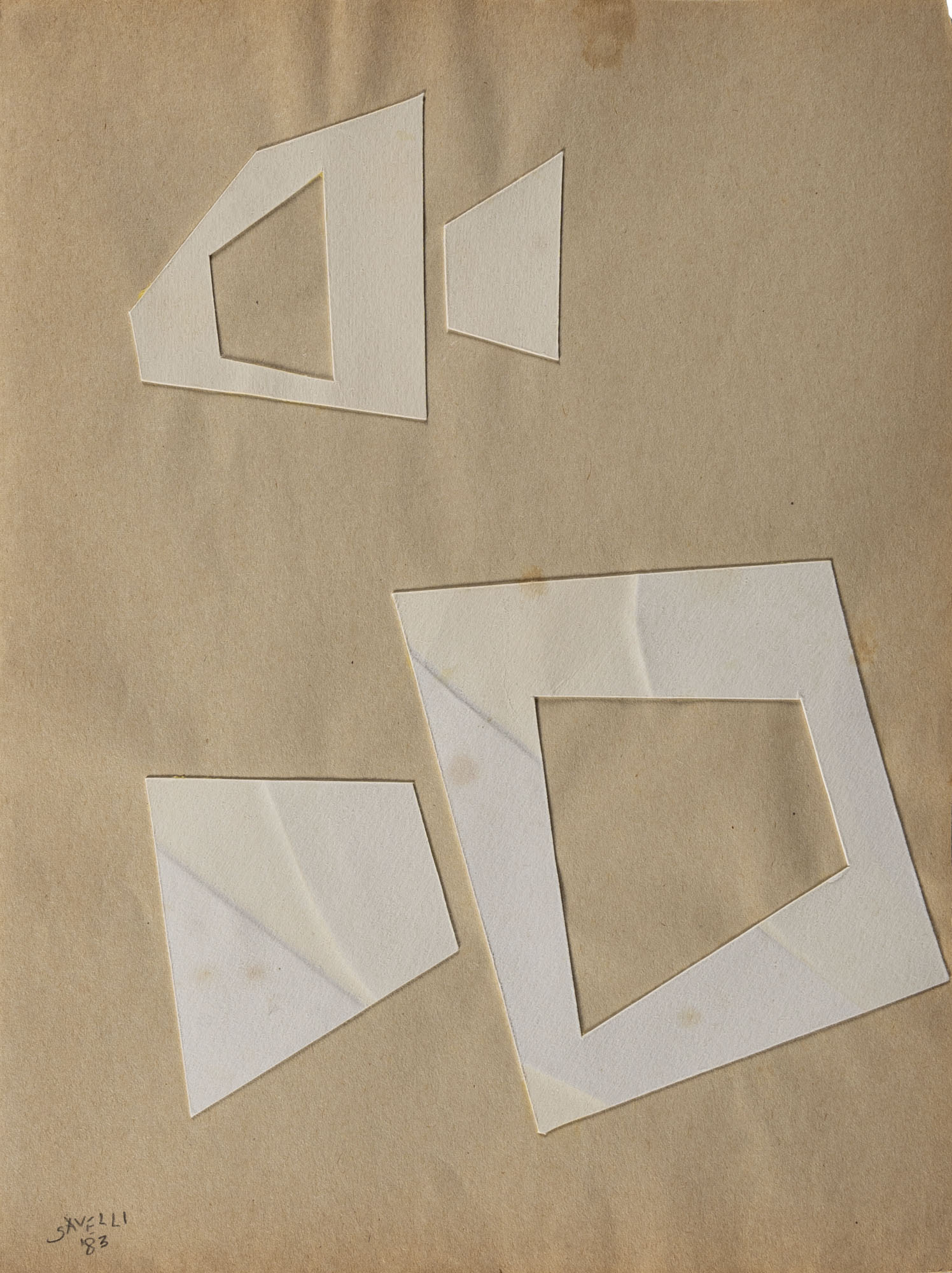 ANGELO SAVELLI(1911 - 1995)Senza titolo1983Collage su carta30 x 21,5 cm circaFirmato e datato in basso a sinistraPROVENIENZA:Collezione privata, Brescia