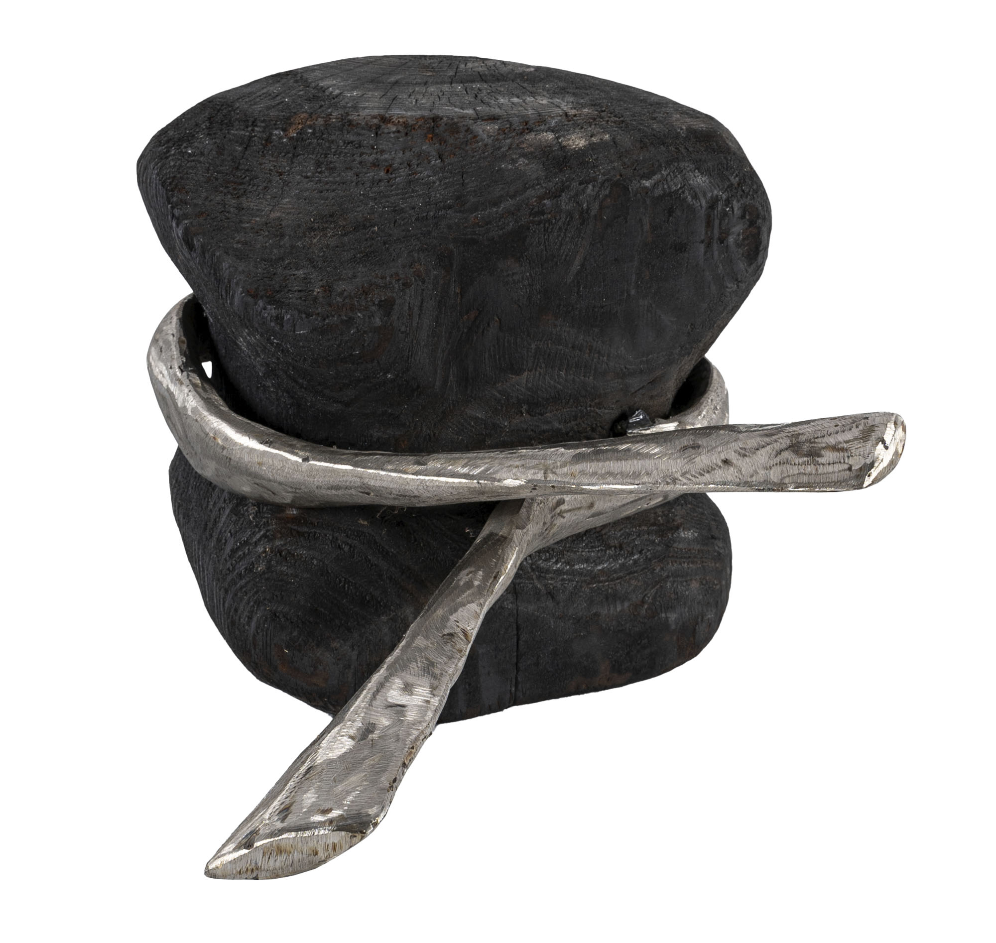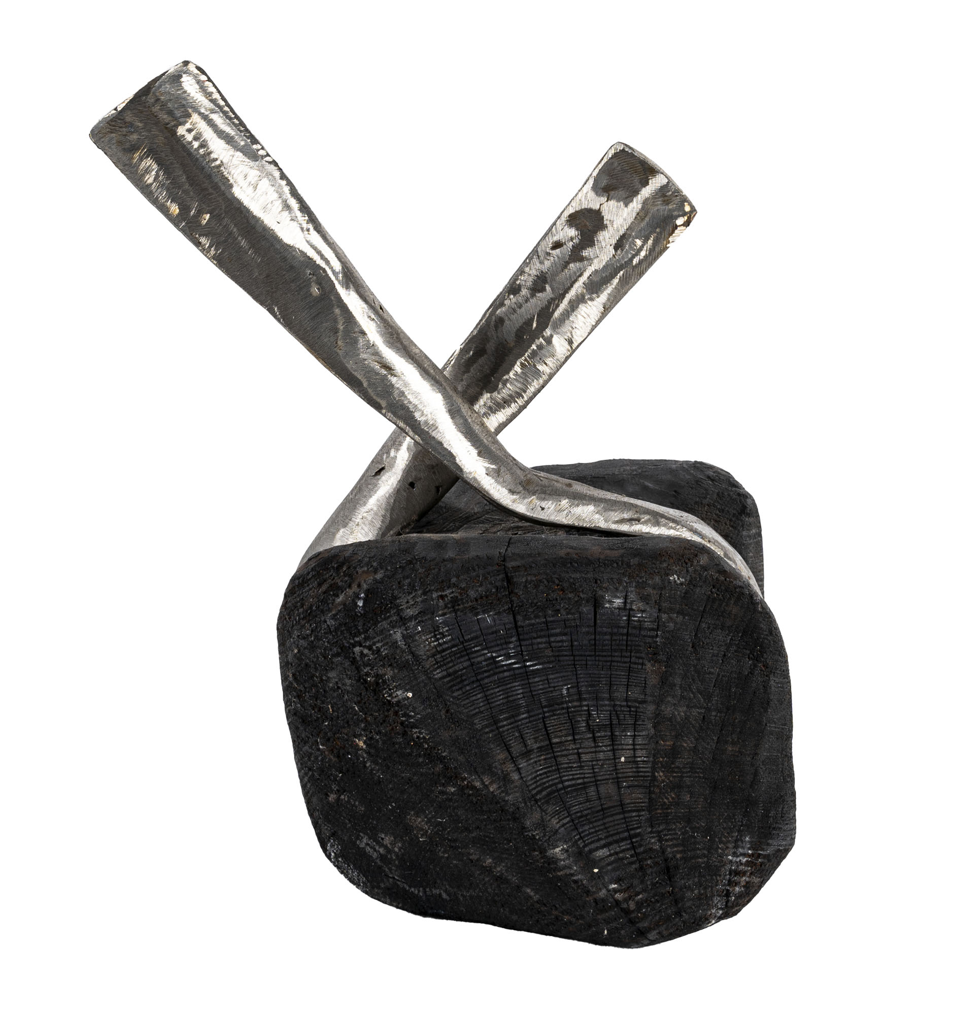 EDUARD HABICHER(1956)Senza titoloScultura in legno combusto e metalloAltezza 27 cm circaPROVENIENZA:Collezione privata, Brescia