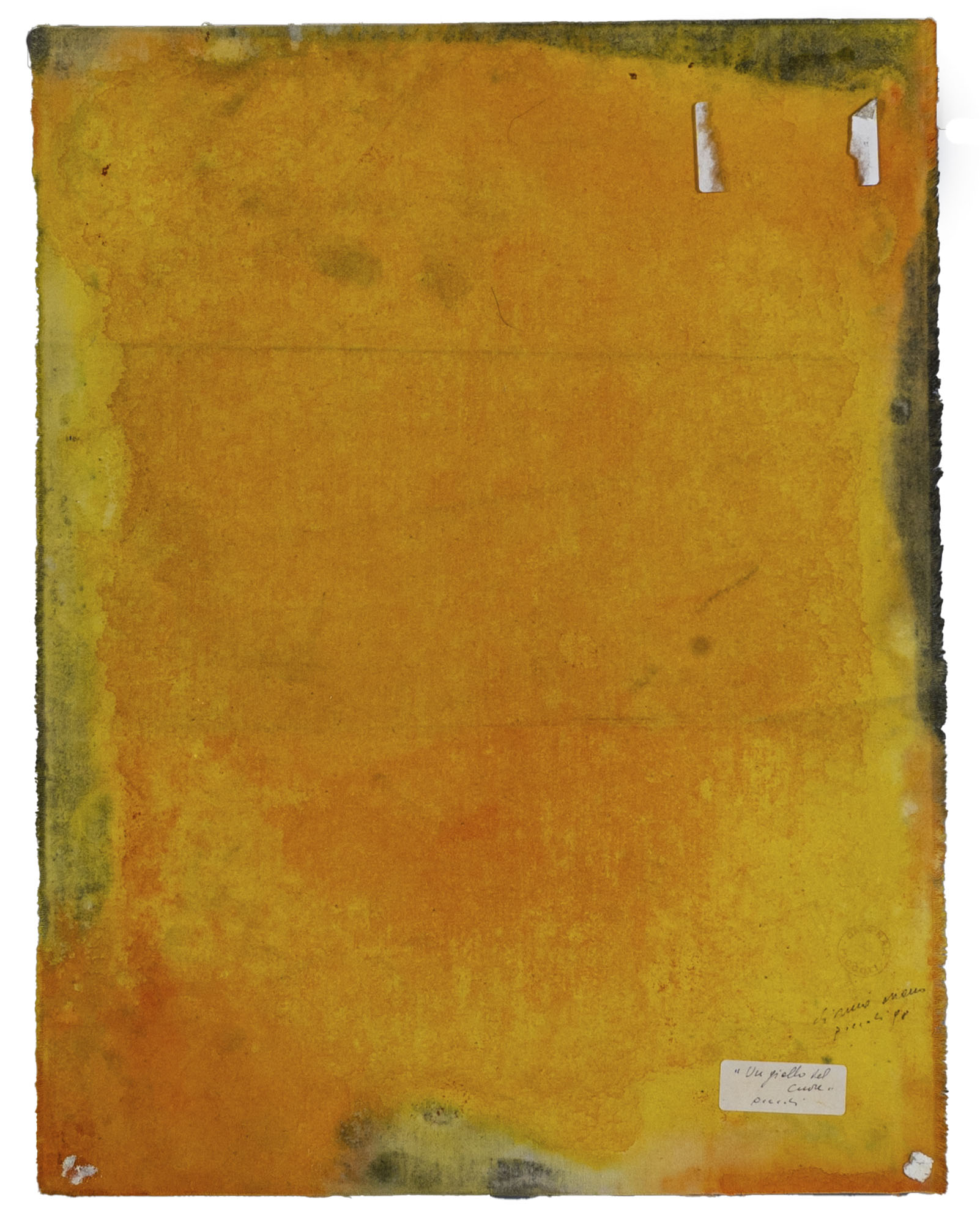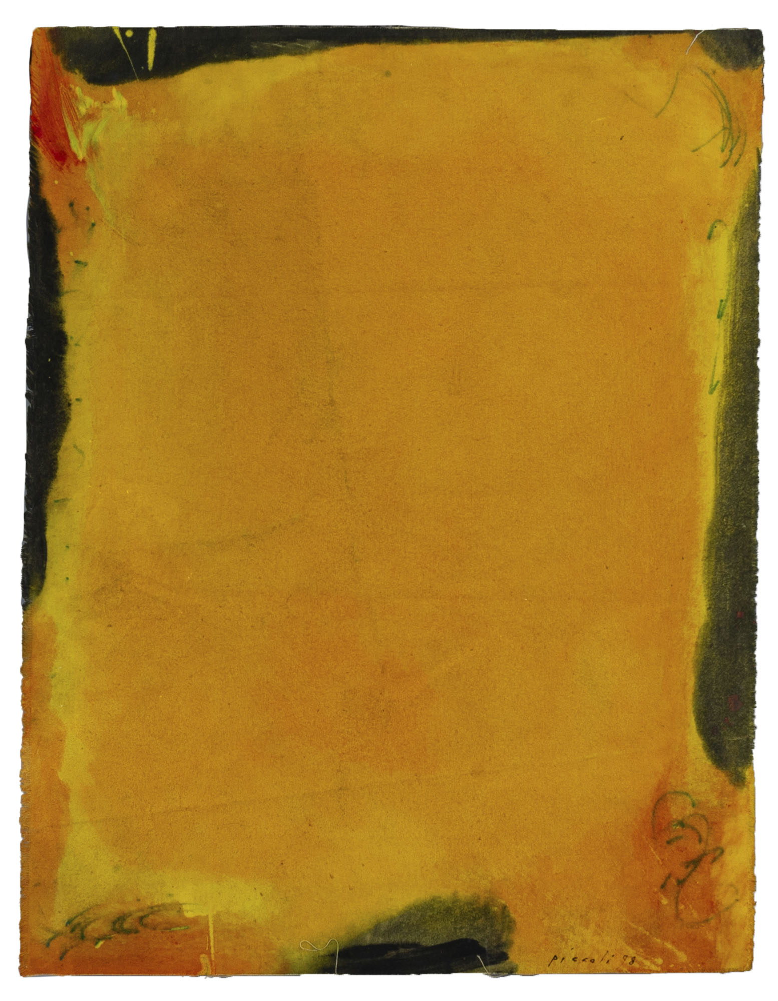 GIANRICCARDO PICCOLI(1941)Un giallo nel cuore1998Tecnica mista su stoffa47 x 36 cmFirmata e datata in basso a destraFirma, data e timbro dell'artista al retroTitolo e firma su etichetta al retroPROVENIENZA:Collezione privata, Milano