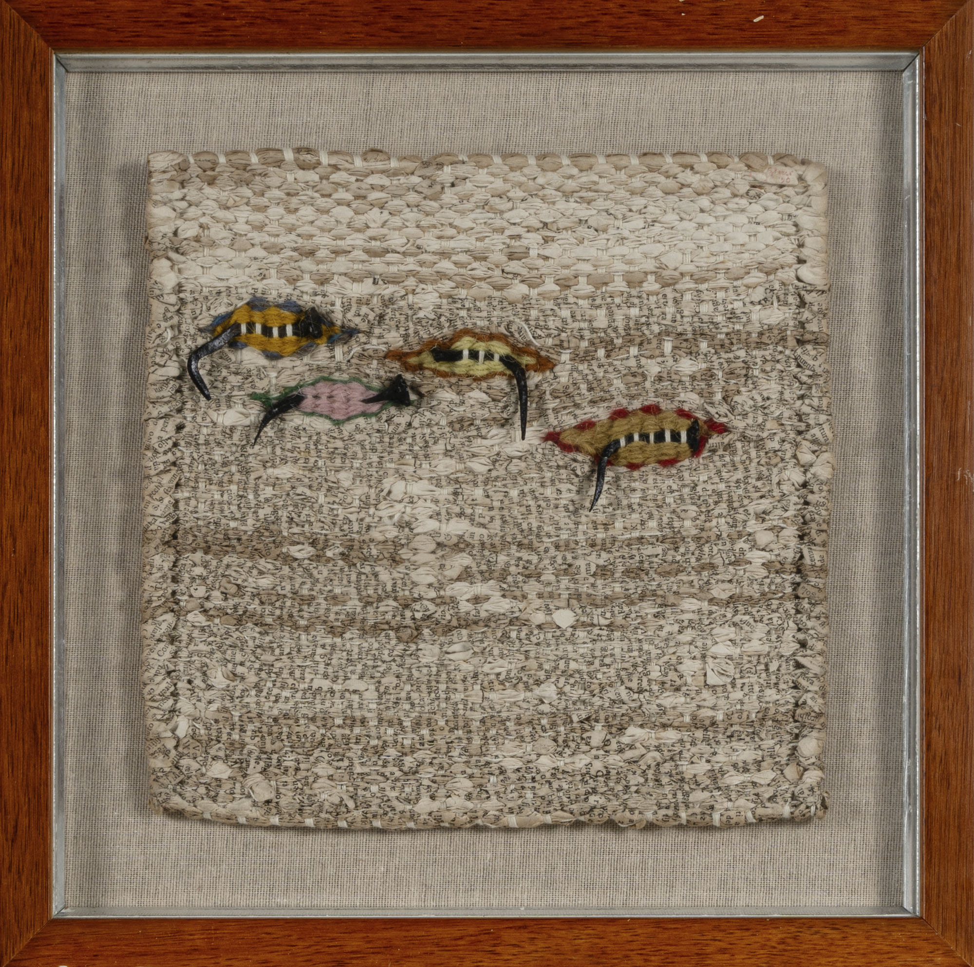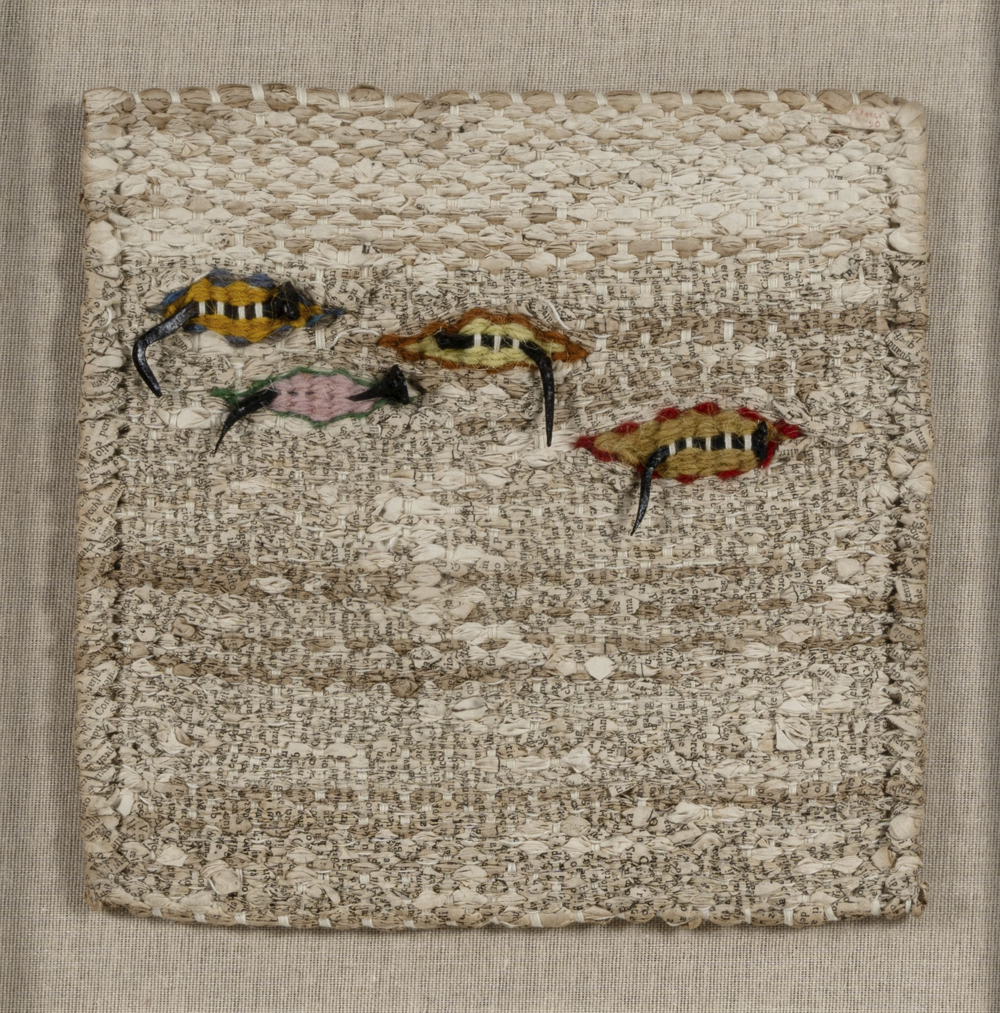 LUCIANO GHERSI(1952)Senza titolo1990Tessuto di filati e carta realizzato a mano con applicazioni di chiodi25 x 25 cmFirmata e datato in alto a destraPROVENIENZA:Collezione privata, Milano