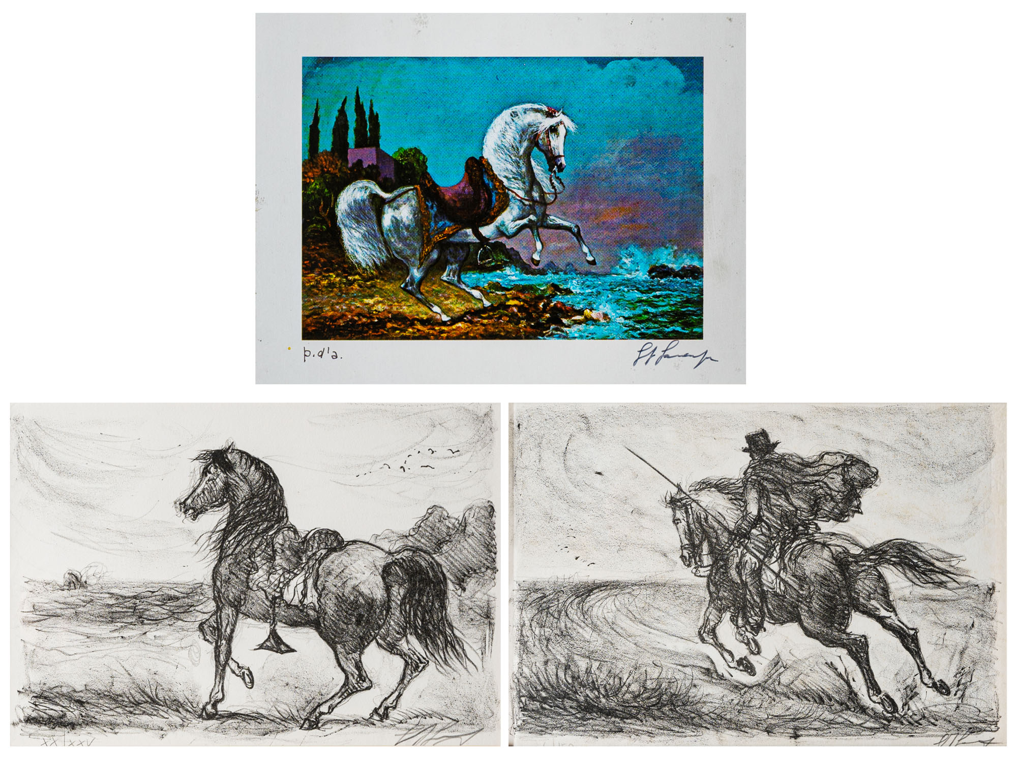GIOVAN FRANCESCO GONZAGA(1921 - 2007)Lotto multiploLotto composto da tre opere grafiche:Senza titolo (Cavallo)Litografia su carta, es. XX/XXV24 x 34 cmFirmata a matita in basso a destra e numerata in basso a sinistraSenza titolo (Cavaliere)Litografia su carta, es. 6/15024 x 34 cmFirmata a matita in basso a destra e numerata in basso a sinistraSenza titolo (Cavallo)Litografia su cartoncino applicata su carta, es.p.d.a17,5 x 23 cmFirmata in basso a destra e numerata in basso a sinistraPROVENIENZA:Collezione privata, Biella