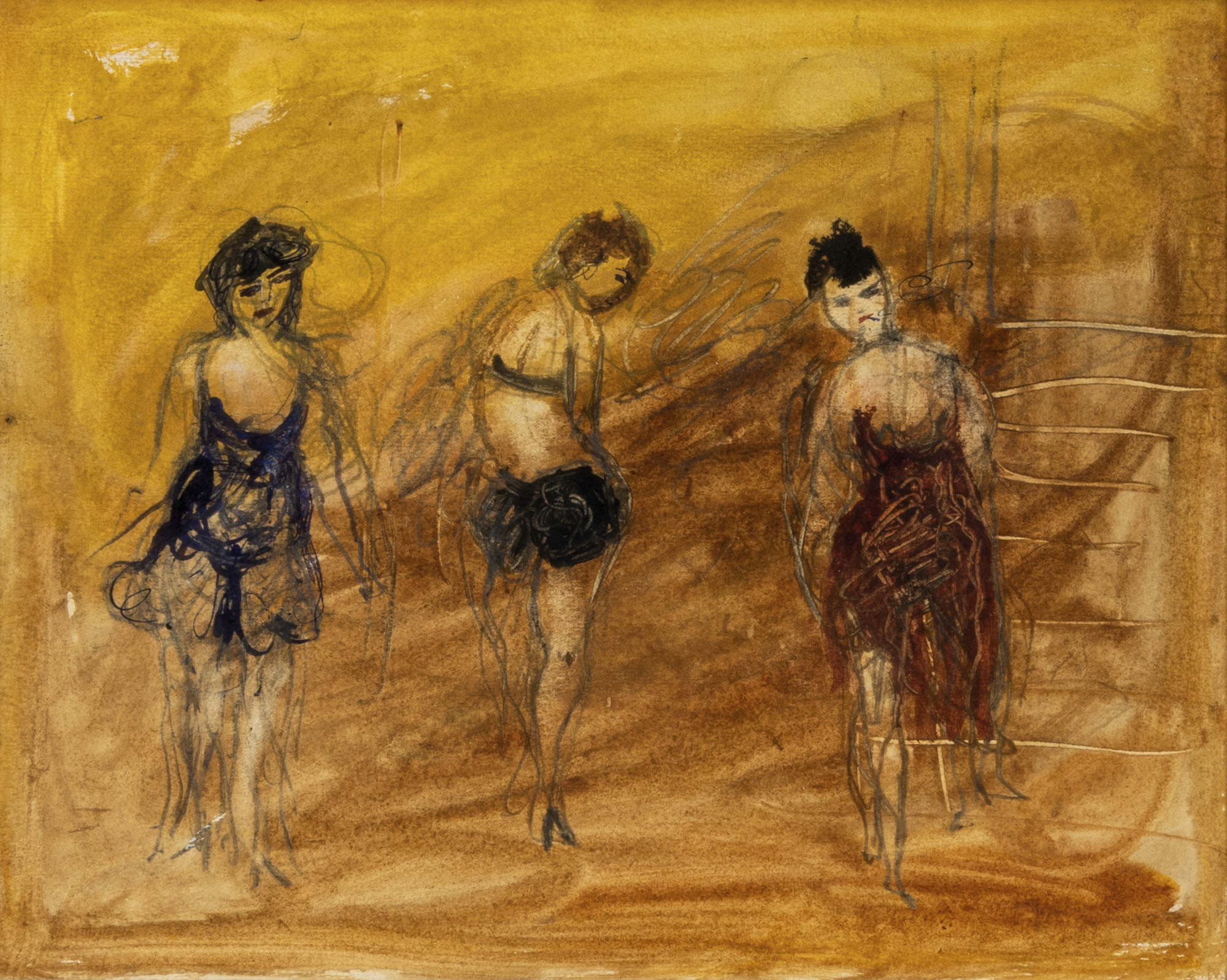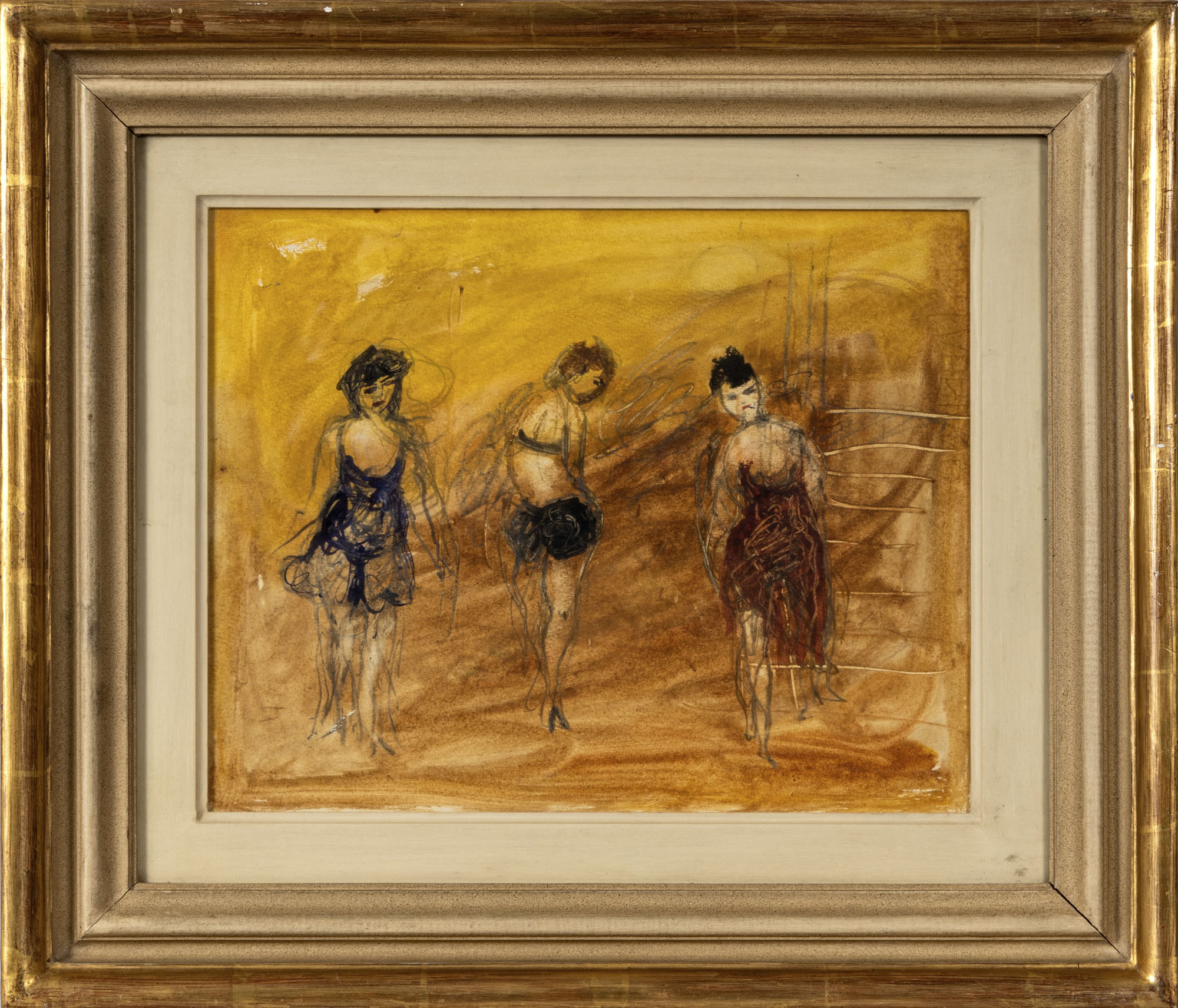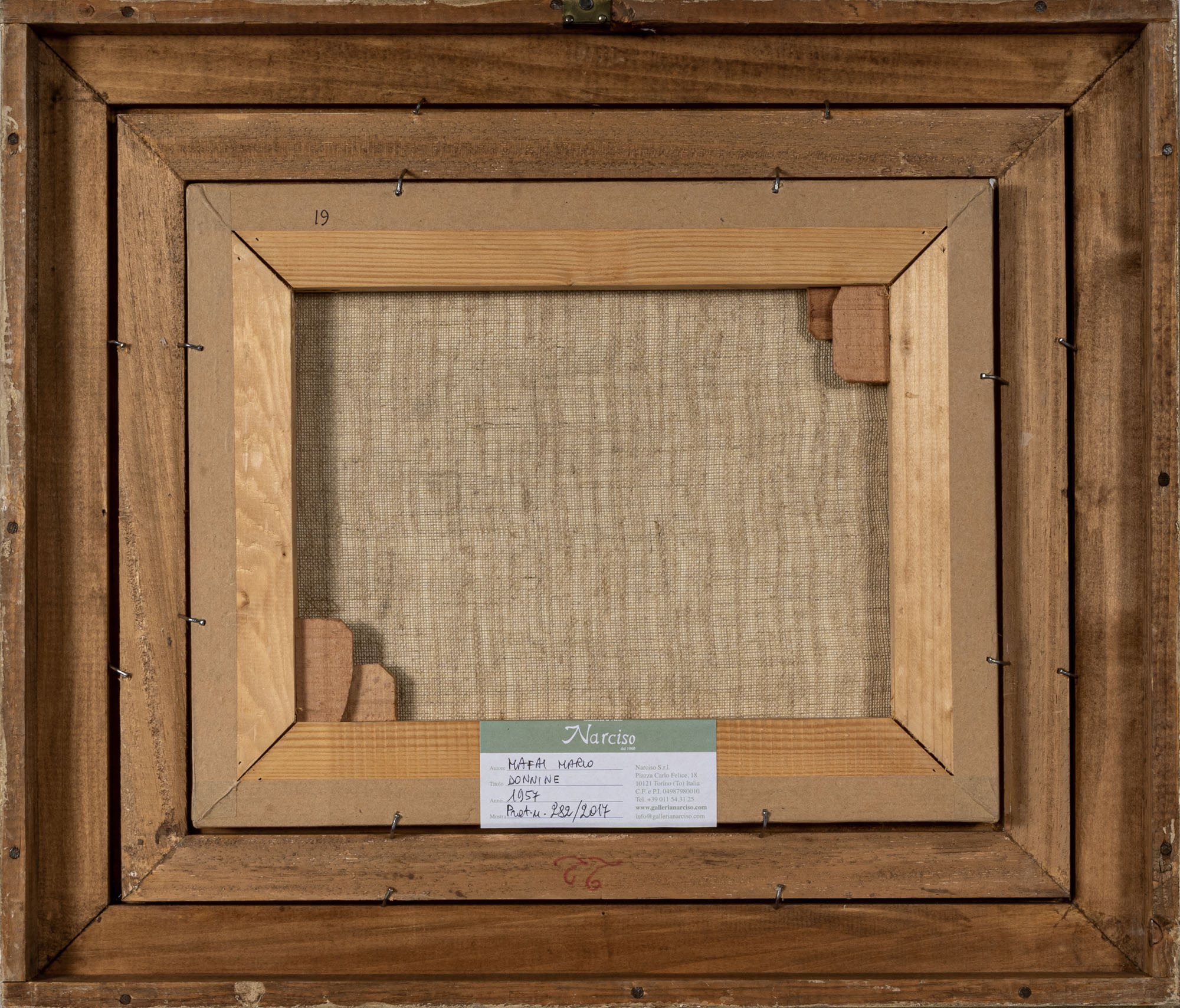 MARIO MAFAI(1902 - 1965)Donnine1957Tecnica mista su carta applicata su tela27 x 34 cmPROVENIENZA:Galleria d'Arte Narciso, Torino (etichetta al retro)Collezione privata, Torino