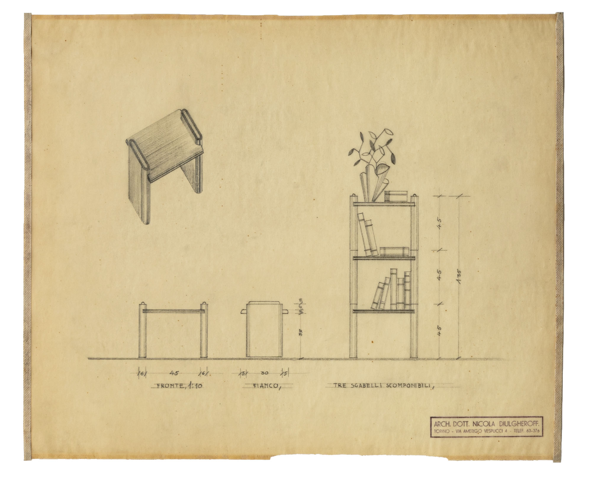 Tre sgabelli scomponibili