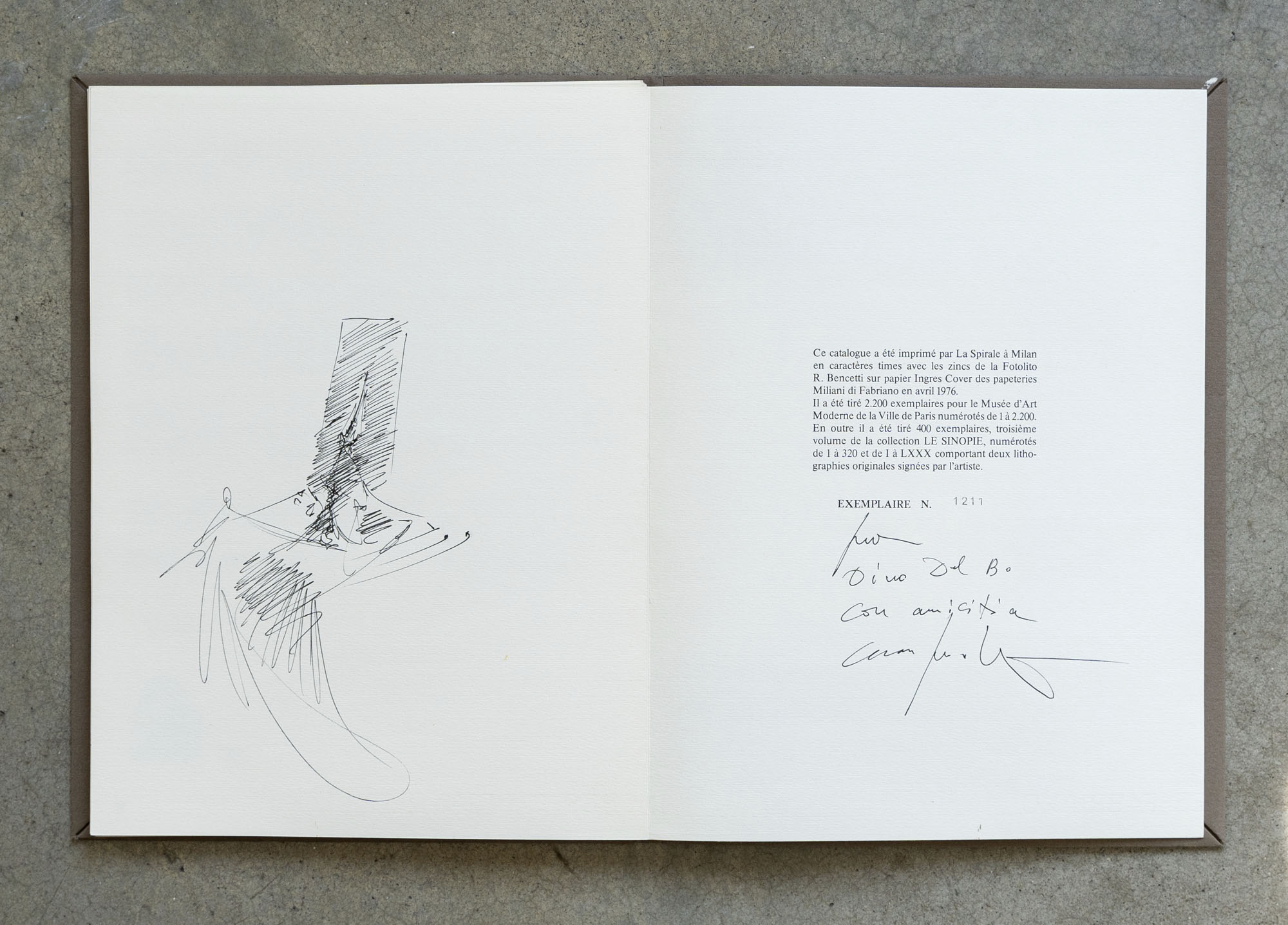 CESARE PEVERELLI(1922 - 2000)L'atelier de l'artiste. Musée d'Art Moderne de la Ville de Paris1976Catalogo illustrato edito in occasione della mostra tenutasi presso il Musée d'Art Moderne de la Ville de Paris, Parigi (5 maggio - 20 giugno 1976), con un disegno originale firmato dall'artista, es. 1211/2200Senza difetti