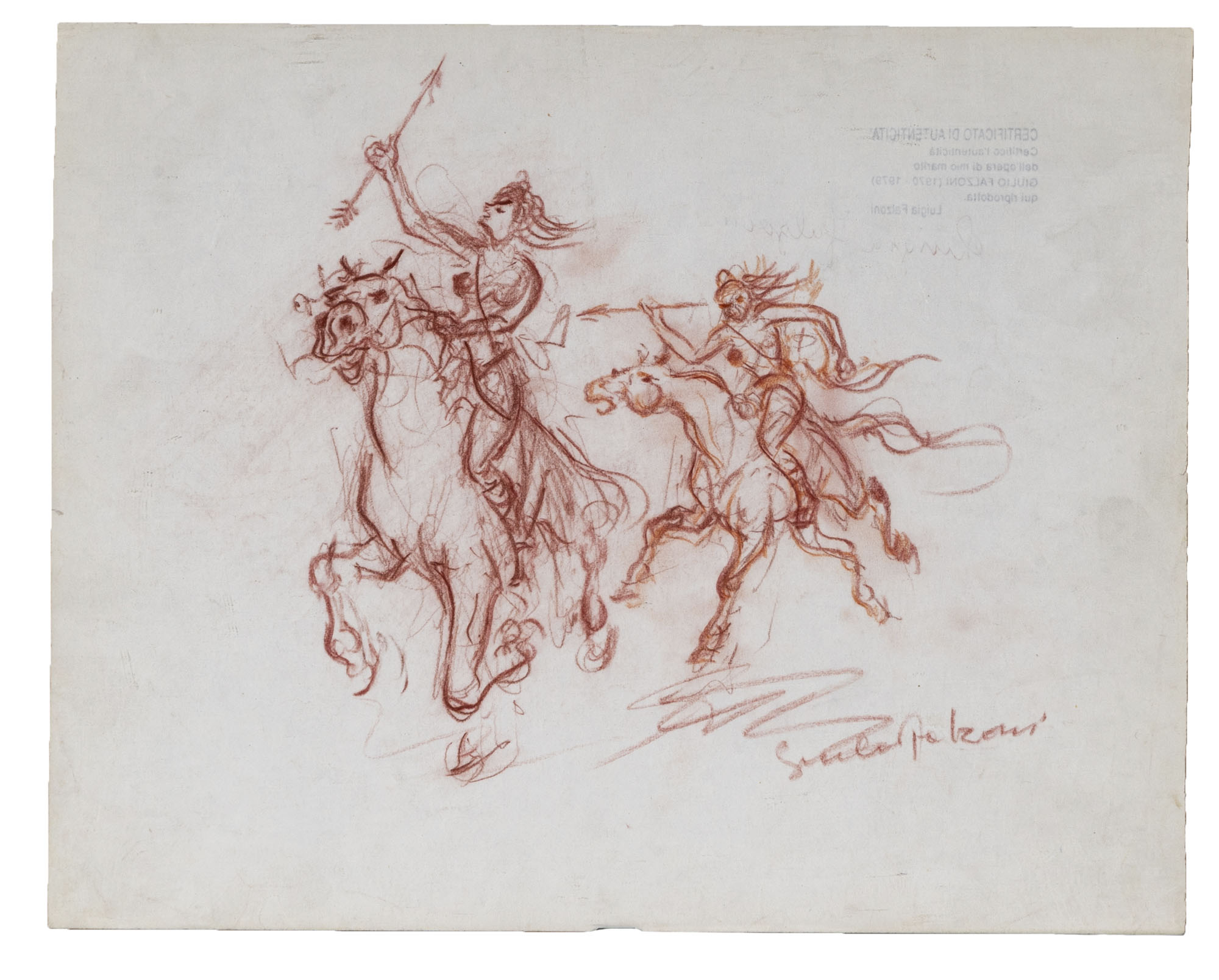 GIULIO FALZONI(1900 - 1978)Lotto multiploLotto di due disegni:Senza titoloSanguigna su carta29,5 x 37 cmFirmata in basso a destraTimbro di autenticità a cura di Luigia Falzoni al retroSenza titoloSanguigna su carta29,5 x 36,5 cmFirmata in basso a destraTimbro di autenticità a cura di Luigia Falzoni al retroPROVENIENZA:Collezione privata, Milano