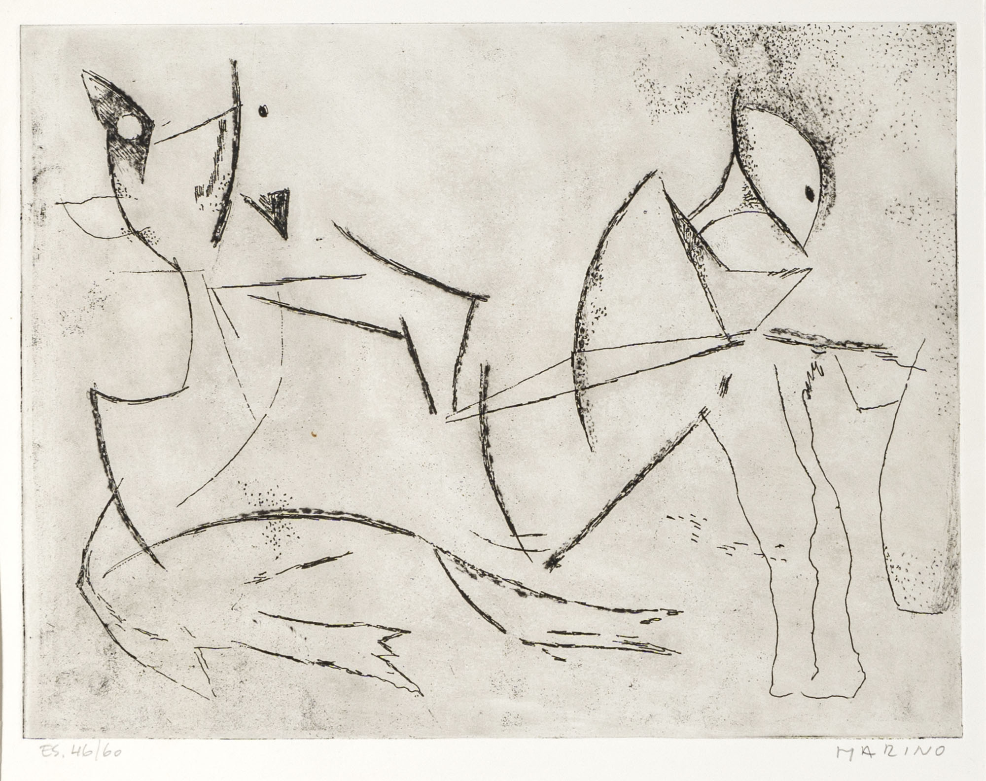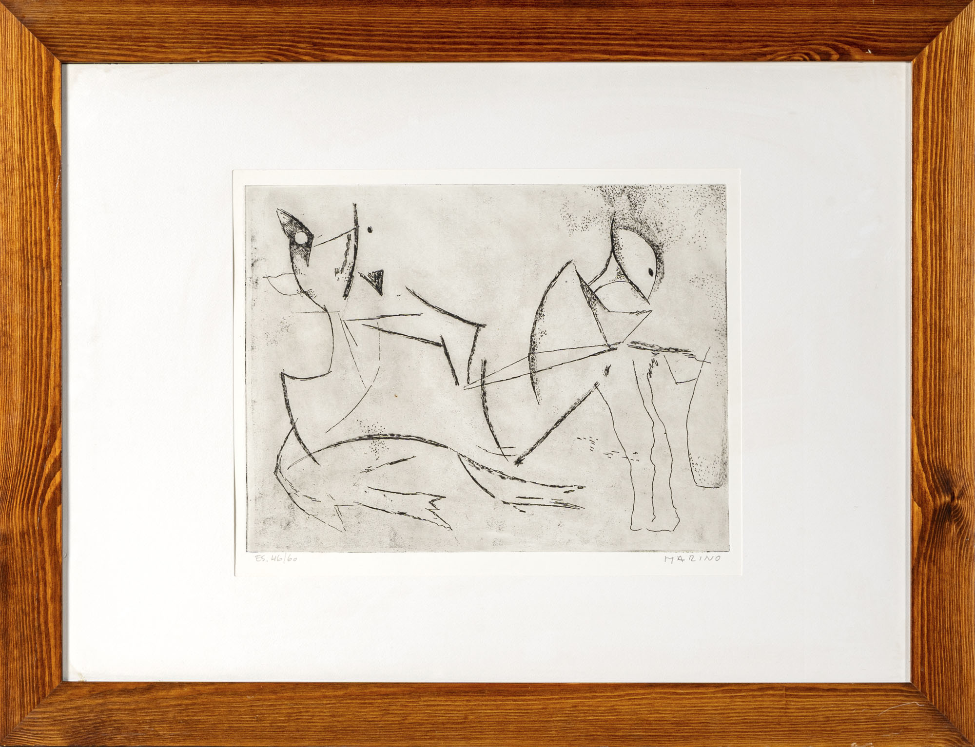 MARINO MARINI(1901 - 1980)Guerriero1971Acquaforte e puntasecca, es. 46/60, parte della cartella 'Marino Marini opera grafica, incisori italiani contemporanei', Luigi De Tullio stampatore (timbro a secco), con passe-partout originale50 x 69,5 cm (foglio)31,5 x 41,5 cm (lastra)Firmata a matita in basso a destra e numerata in basso a sinistraPROVENIENZA:Collezione privata, MilanoBIBLIOGRAFIA:Fondazione Marino Marini (a cura di), Marino Marini - Catalogo ragionato dell'opera grafica, Edizione Graphis Arte, 1990, p. 214 (ill.)