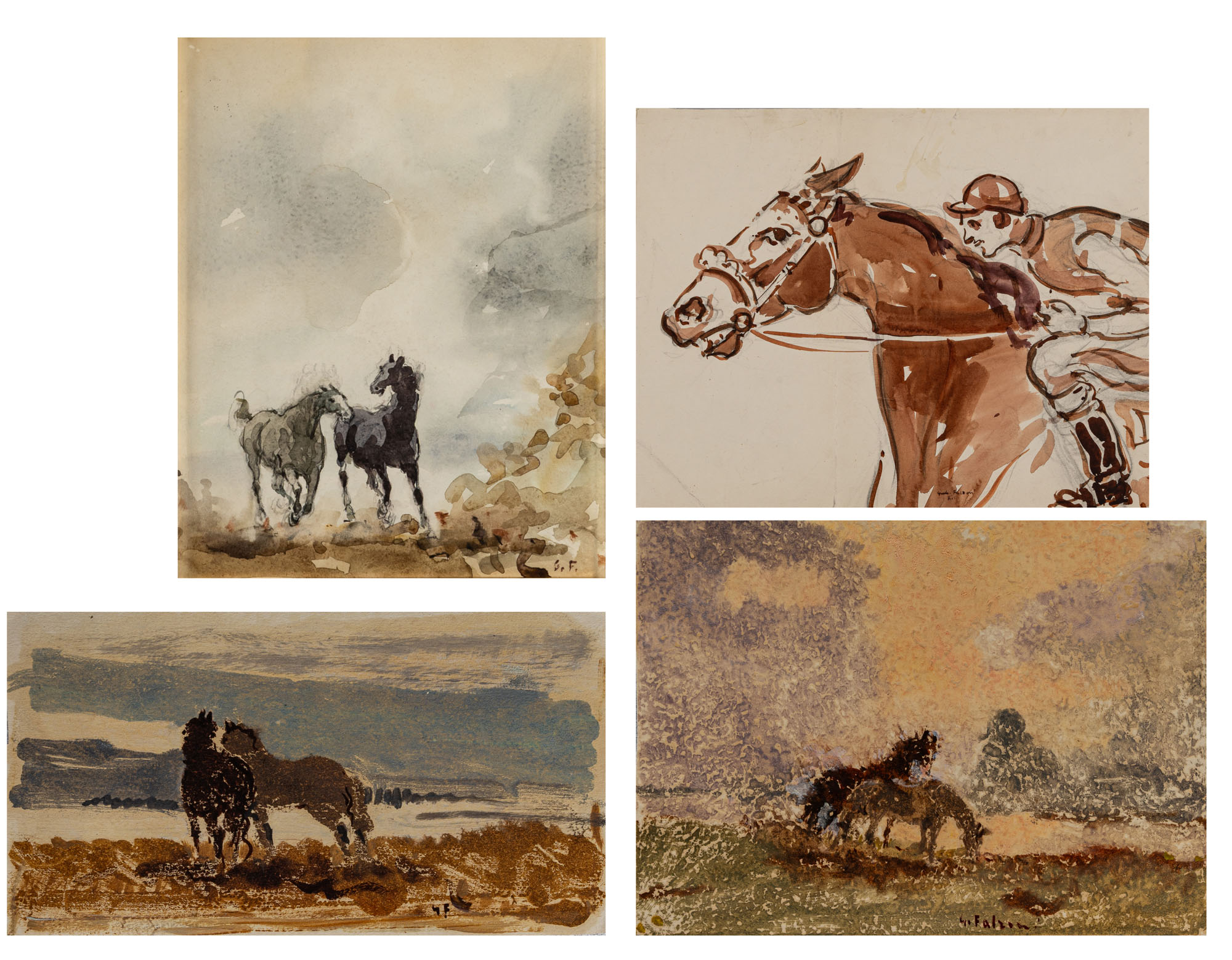 GIULIO FALZONI(1900 - 1978)Lotto multiploLotto di quattro disegniSenza titoloAcquerello su carta30 x 24 cmSiglato in basso a destraSenza titoloAcquerello su carta13 x 17,5 cmFirmato in basso al centroSenza titoloAcquerello su carta11 x 21 cmSiglato in basso a destraSenza titoloPastelli su carta17 x 23,5 cmFirmato in basso a destraTimbro di autenticità a cura di Luigia Falzoni al retroPROVENIENZA:Collezione privata, Milano